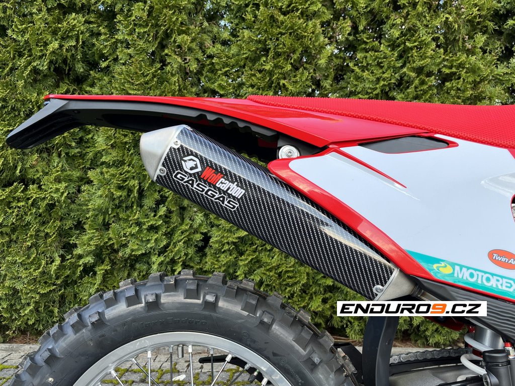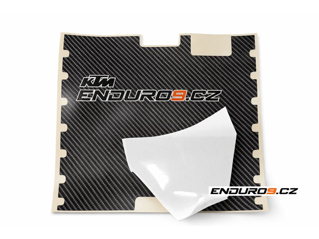 Sada ochranných nálepek, polepů předního světla a koncovky výfuku s imitací struktury karbonových vláken. Provedení s logem ENDURO9